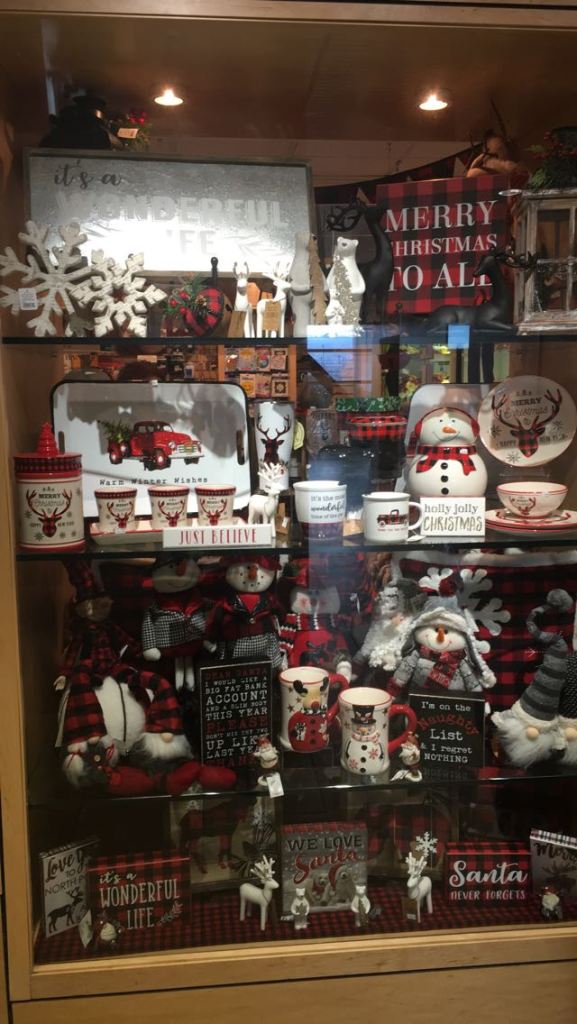 Here is a display window done up for Christmas in buffalo check red, white, and black.